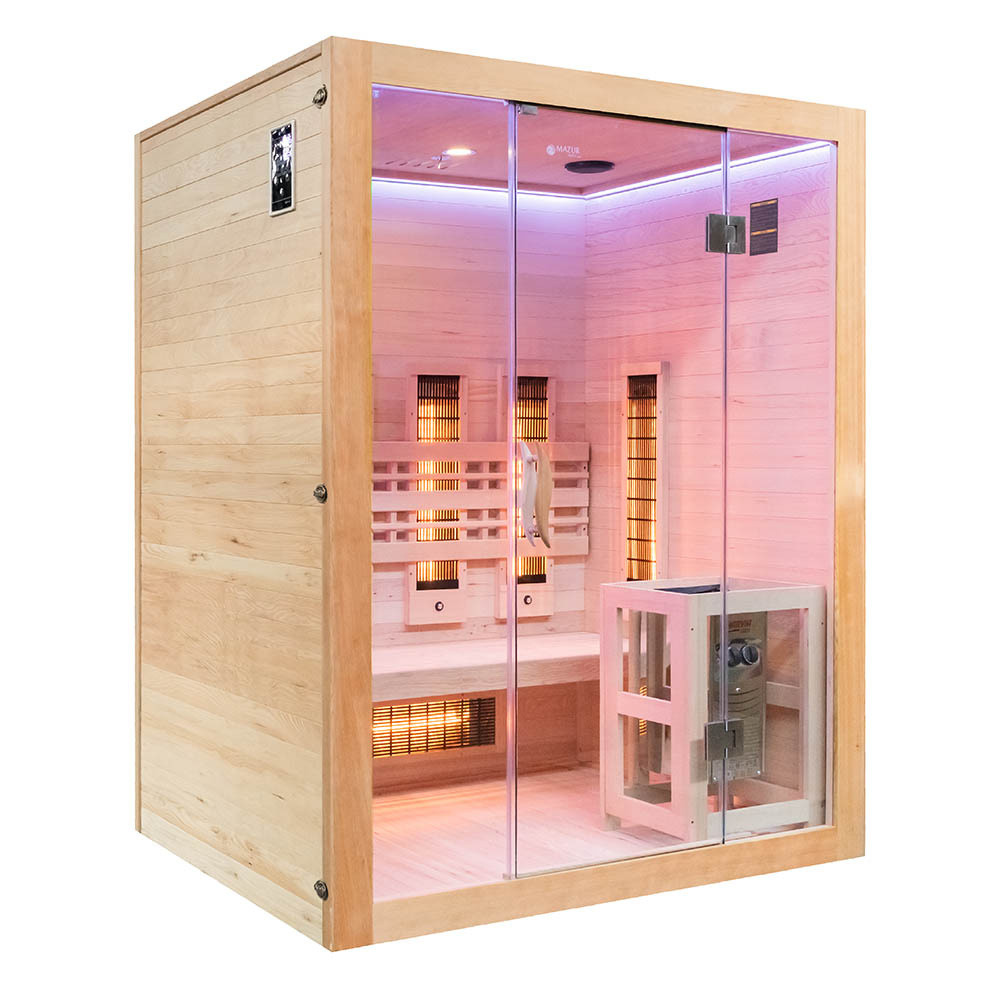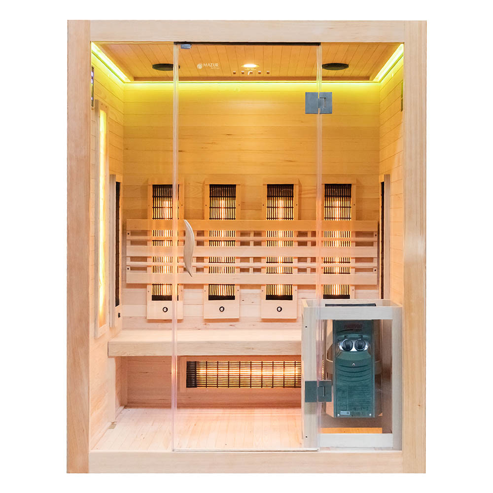 MO-EA3R-M COMBO Infrared/Finnish sauna with HARVIA 4.5 kW heater and salt stonez | Home SPA | Panoramic Glass